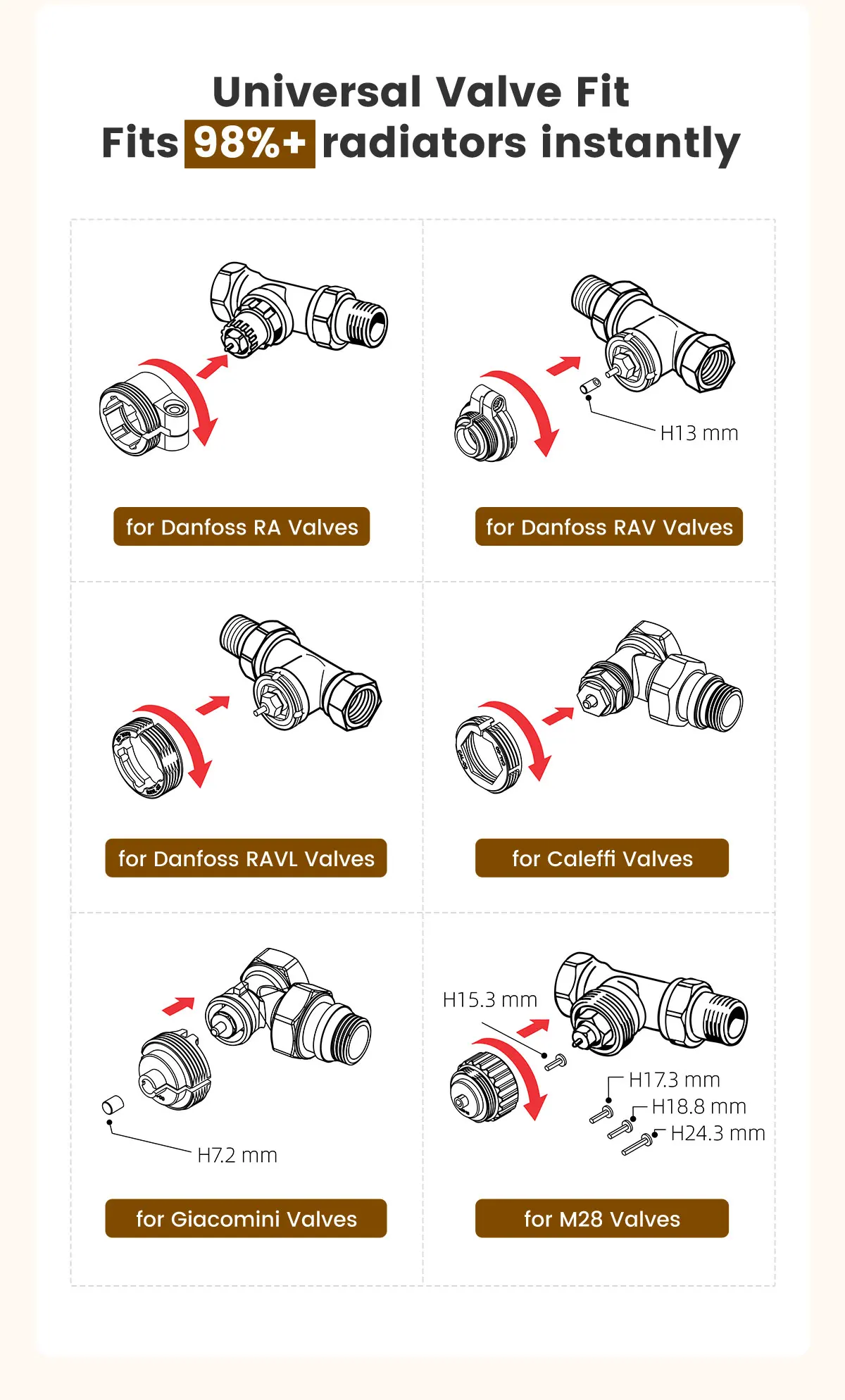 Compatible with most radiators available on the market. |